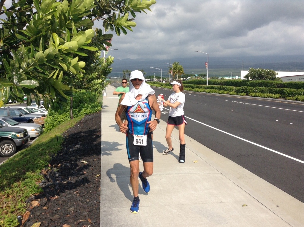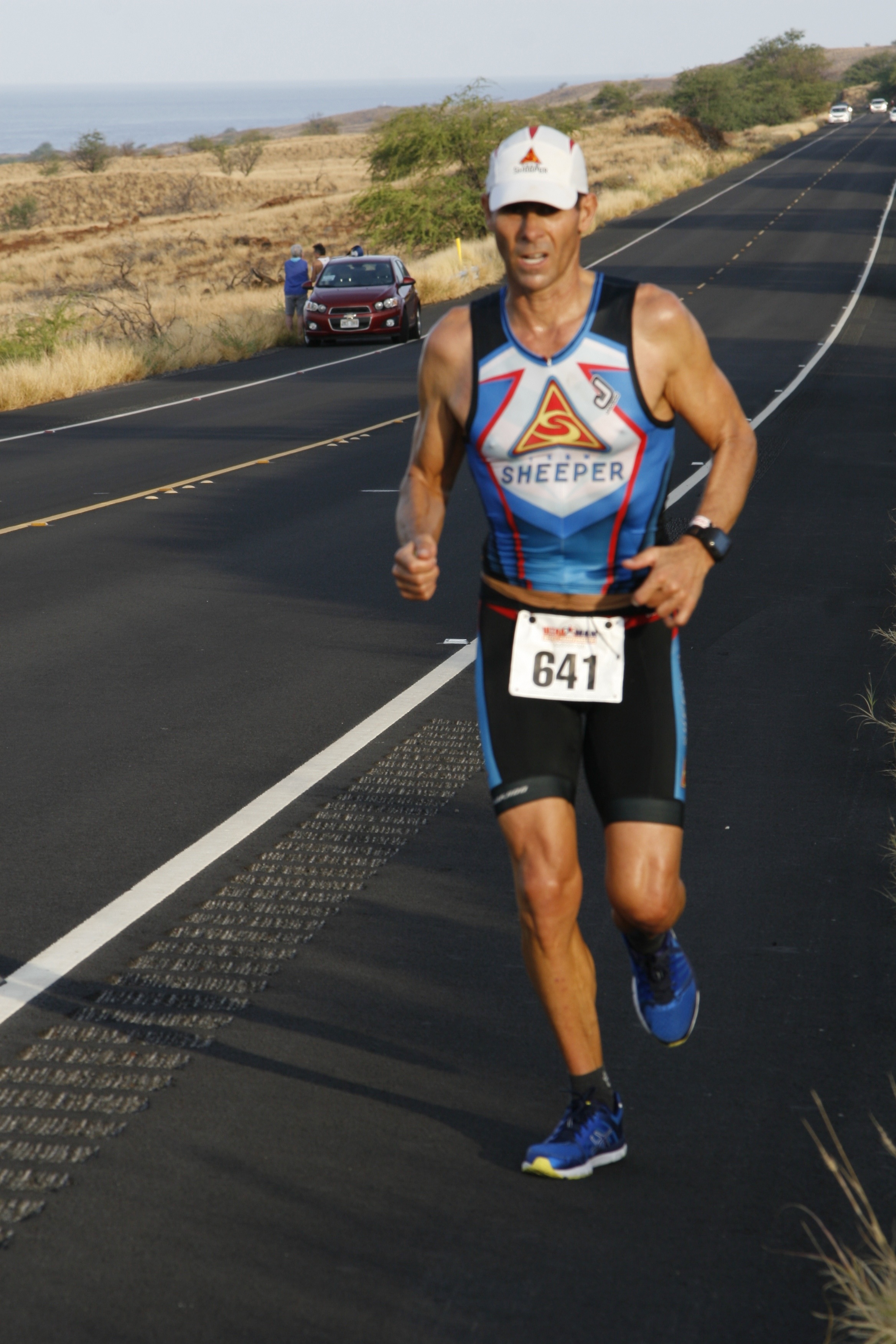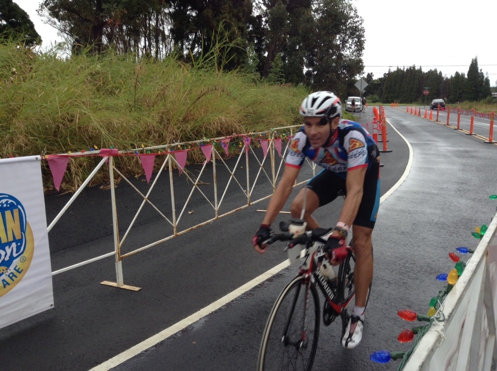 Tim had his first bad patch and lost some time, but got his second wind in Waimea and was able to recover some of that on the final 6.5M Kohala Mountain Rd climb. So he still led after Day 2, but the lead had narrowed. And the effort had cost him physically — the run was going to be, well, “interesting.”