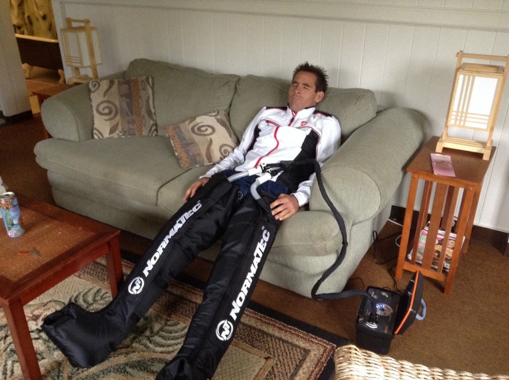 Day 1 was fantastic. Tim came out of the water 2nd, 10 min behind Hillary Biscay, whom Tim coached back when she first started triathlons (she was a collegiate swimmer).