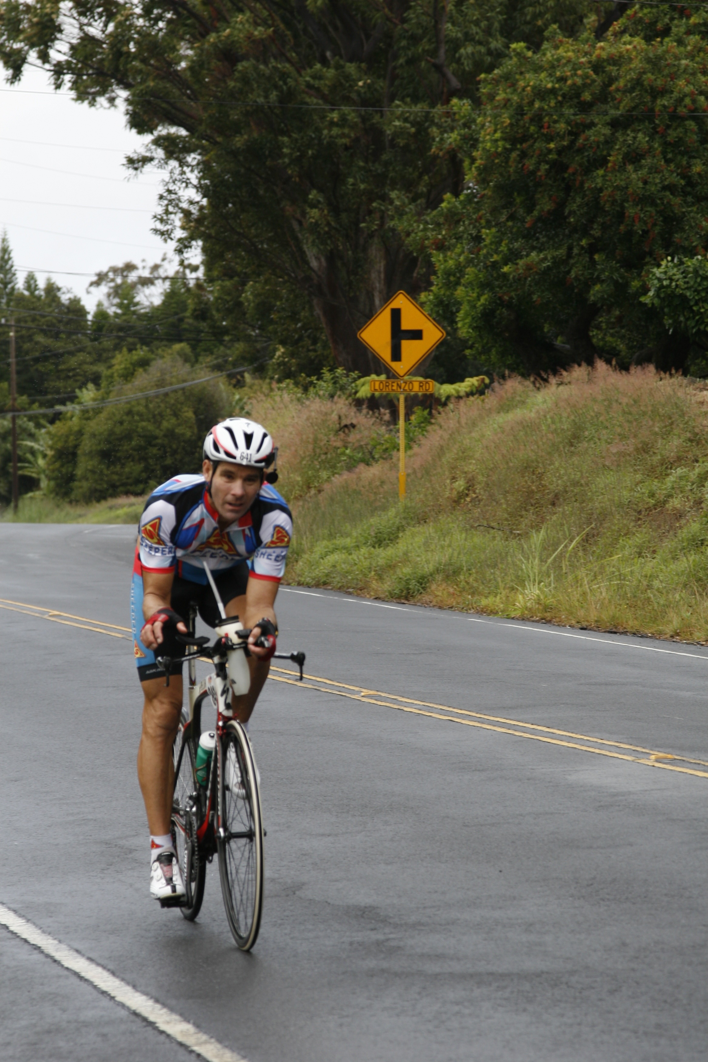 Tim in 2nd place on the stage just after the Red Road and before all of the traffic lights into Hilo