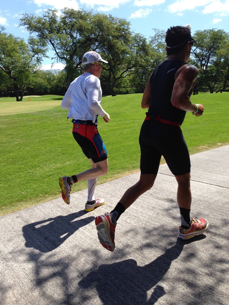 I wasn’t sure of the exact race time, but I was pretty sure based on my swim and bike times that I would be around 5 hours if I could run around 1:40 for the half marathon, which is easier said than done at this race. Sure, I had run 1:31 at St. George, but Honu is humid and has a variety of surfaces, including a lot of time on the spongy grass of the golf course. The male pros typically run 9-10 minutes slower here than they do at other 70.3s, so that put me with prospects of around, well, 1:40 – if I ran well.