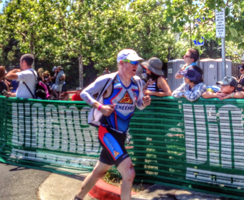 Anyway, I was more worried about my own race, so I just tried to keep my power consistent and save a little extra for what I figured was going to be a hot run. I backed off a little in the last couple of miles and cruised into T2 with a 2:33 bike split. I had a little miscue finding the rack where my shoes were, but the good news is that I didn’t see many bikes in the rack. The Ironman site says I was 15th in M50-54 at that point.