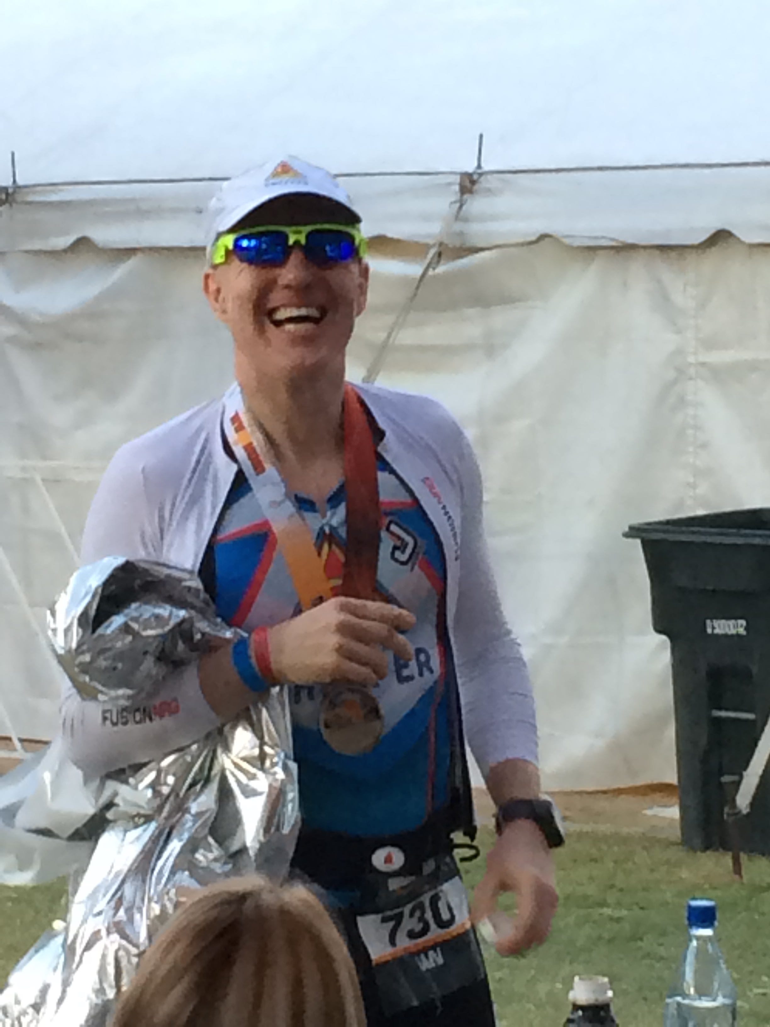 • It’s tough for everyone, not just you. When you encounter tough conditions and get into a negative frame of mind, it can turn into a pity party. I tried to turn it around and revel in the conditions by telling myself that others were having it worse, that faster guys were going to overbike (trying to hit a time goal) and blow up on the run – basically, make lemonade out of lemons.