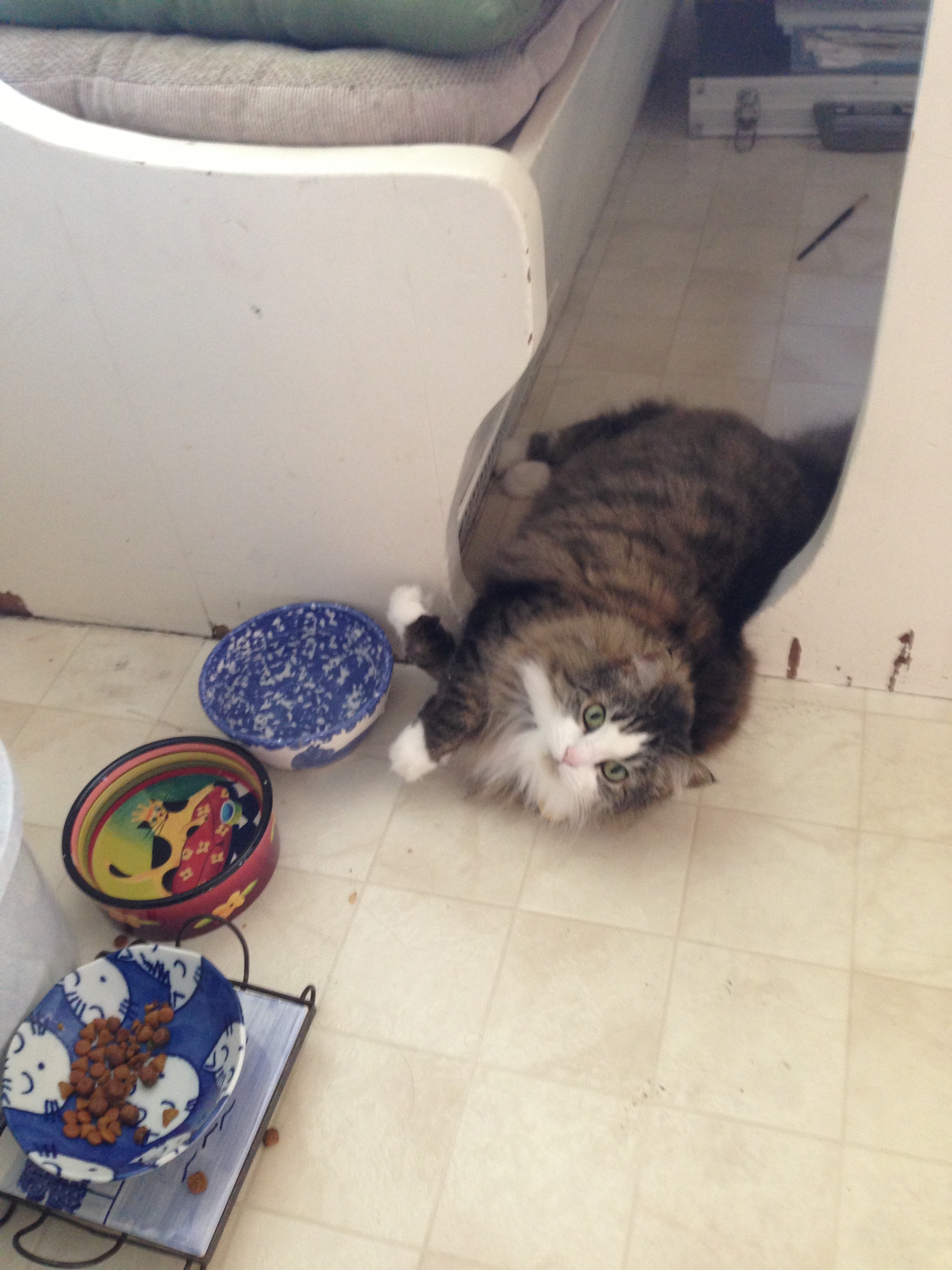 (The cat still does her “freaky drinking,” just not on ugly linoleum. 🙂 )