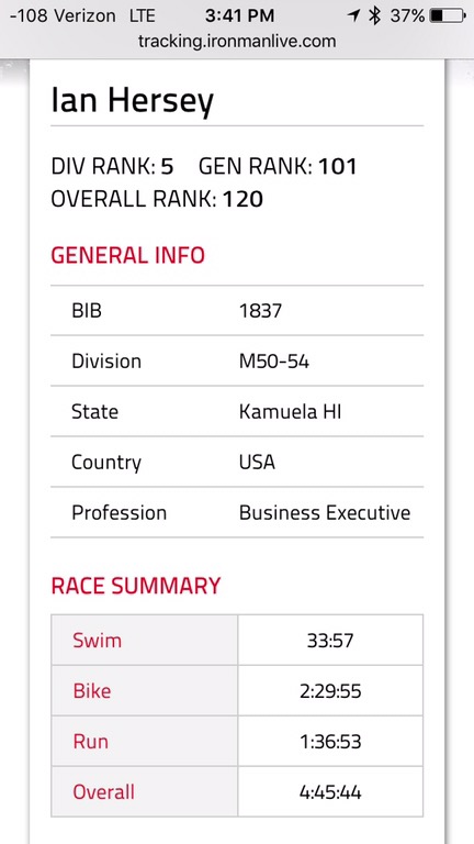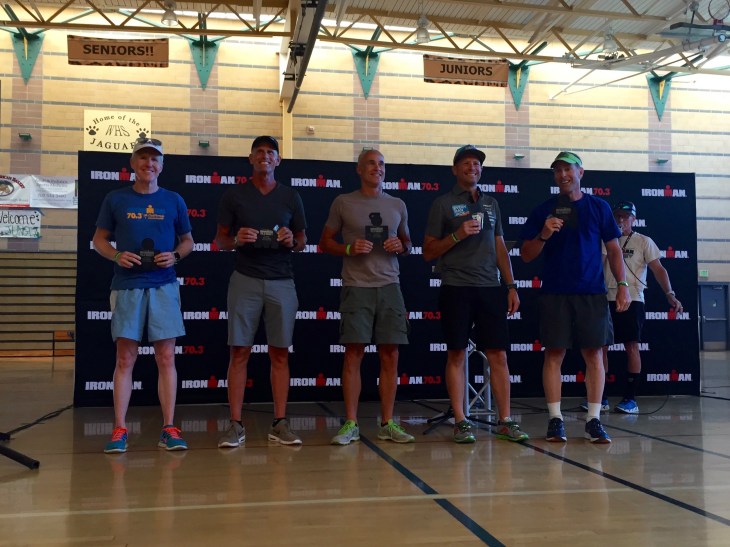 I crossed the line with a time of 4:45:44, which is a PR for me by 1:16 and netted me 5th in the age group – my first 70.3 podium! I got absolutely smoked by the guy in 1st (21 minutes faster, mostly in the bike), but hey, I age up next year to the 55-59 group, where I’ll still get smoked by a few of the truly elite.