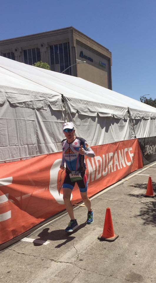 I had an OK race at Oceanside in spite of my pre-race blunders, and since then I’ve been trying to improve something each race. I jumped into the Wildflower Olympic distance at the last minute and had a fun time there, albeit plagued with cramping in the second run. I’ve also raced three 5Ks this season, having been called upon by my San Francisco-based running club to help our men’s 50+ team score some points. This is not a distance that’s suited to me, and my training definitely hasn’t included the kind of speedwork that you need for 5K, but as I often tell people, you should embrace your weaknesses. My first two were identical 20:05 times, which is a little embarrassing because I used to hit sub 20 for the first 5K in marathons (usually not the last 5K, though), but by the July 4 Freedom Fest in Morgan Hill, I was able to knock out a 19:51 after a big weekend of bike and run training, so that had given me some renewed confidence in my running. I needed it.