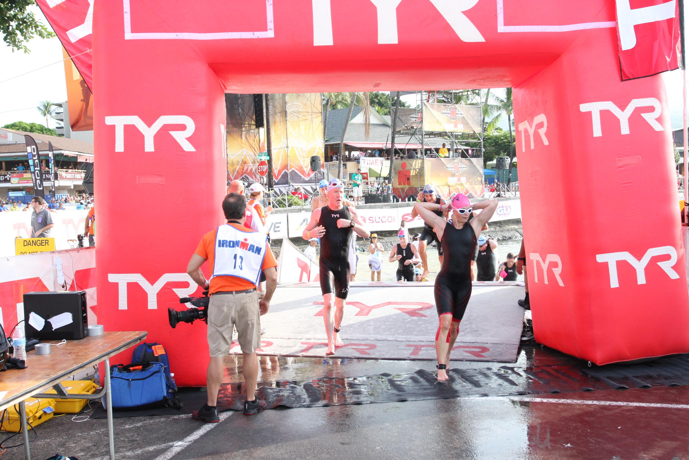 Day 1 was fantastic. Tim came out of the water 2nd, 10 min behind Hillary Biscay, whom Tim coached back when she first started triathlons (she was a collegiate swimmer).