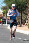 I was very quickly in the groove on the bike. My power didn’t feel that great at first, but my speed was good and I was passing a lot of riders very quickly. I tried to get some fluids and a salt tablet in me once I got past the first series of turns and bunches of riders — the swim depletes you more than you think. I spent the better part of the first loop getting past lone fast swimmers and one or two packs — I’d call them “drafting packs,” but I don’t believe most people were intentionally drafting. It’s just hard to avoid bunching up when you have that many athletes on the course at the same time. The uphill on Beeline Highway also had a headwind on the first loop, so that made it a little easier to get past people; I just increased the power from around 210 watts to 240, and that put me past the packs. The ensuing downhill/tailwind did wonders for my average speed and let my legs relax a little — I was still pedaling but without as much tension in the legs. I noticed that my average speed was north of 22 mph, a first for me. It was my first inkling that this was going to be a faster ride than I had planned. I completed the first loop in 1:40:58, and headed back out.